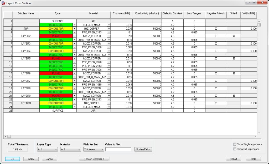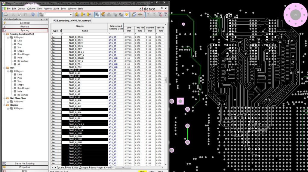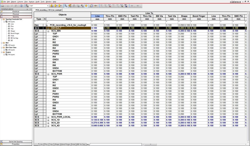 Constraint regions: specific areas can be specified within which different physical and spacing constraints may be applied, for example in the escape region of a BGA